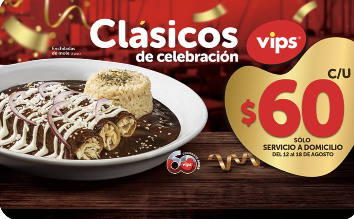 Vips: 60 años cocinando tus clásicos, disfrútalos a sólo $60 pesos por tiempo limitado
